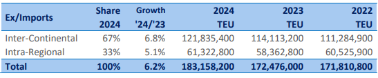 Container Trades Statistics data shows that seaborne container trade for January 2025 was up 5.8% year-on-year. Generally, the individual trade lane situation was positive, with rises in thirty-two routes and declines in seventeen. The only overall lanes that ended in the red were North American (-7.6%) and sub-Saharan Africa exports (-1.1%).